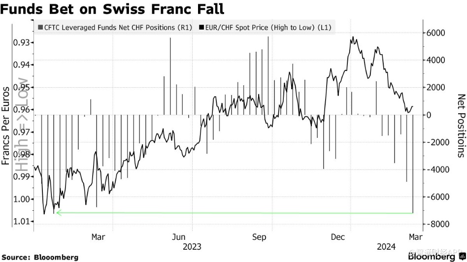 道富环球市场宏观策略主管Michael Metcalfe表示,本周的降息可能引发这些头寸的逆转,这可能加剧未来几个月瑞郎的抛售。