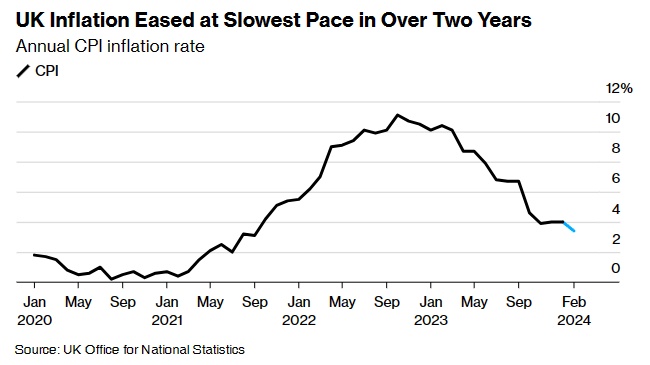 智通财经APP获悉,英国2月通胀降温幅度超出预期,这可能令英国央行更有信心在未来几个月降息。英国国家统计局周三公布的数据显示,英国2月CPI同比涨幅为3.4%,为2021年9月以来最低水平,低于市场预期的3.5%和前值4%;2月核心CPI同比涨幅为4.5%,低于市场预期的4.6%和前值5.1%。此外,英国央行密切关注的服务业通胀从1月地6.5%降至2月的6.1%,这与英国央行上个月的预期一致,为一年多来的最低水平。