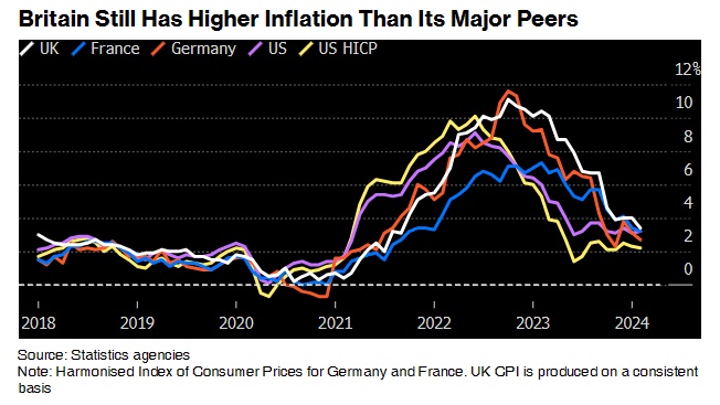 最新数据使英国更接近美国和欧元区的普遍通胀水平。尽管英国通胀率有望在4月暂时跌破2%的目标水平,但英国央行可能希望看到4月通胀和薪资数据,然后再考虑降息。