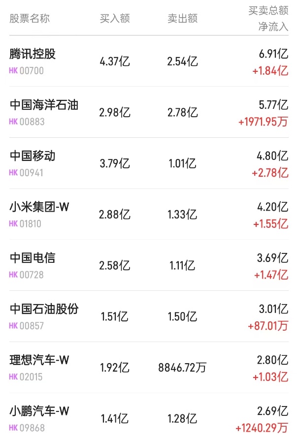 中海油(00883)获净买入1.79亿港元。消息面上,中海油宣布,公司在渤海中北部海域成功发现秦皇岛27-3亿吨级油田,初步测试显示,单井日产原油约742桶。通过持续勘探,实现秦皇岛27-3油田探明石油地质储量1.04亿吨。东吴证券表示,公司持续增储上产,2023年实际油气净产量高于2023年初制定目标;2024年,公司预计将有多个重要新项目投产。