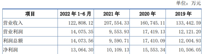 财务方面,于2019年、2020年、2021年及2022年1-6月,公司实现营业收入分别约为13.34亿元、16.07亿元、20.75亿元及12.28亿元人民币。同期,净利润分别约为1.05亿元、1.55亿元、1.01亿元及1.30亿元人民币。