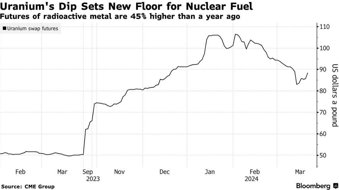 据了解,看涨的投资者押注于这种放射性金属的长期前景,原因是全球供应缺口日益增大,且各国政府转向核能以应对气候变化,需求增加。
