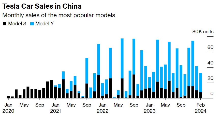 与此同时,特斯拉在中国主要依靠2020年前推出的两款车型来竞争。去年,该公司的Model 3轿车进行了小幅升级,Model Y的升级幅度更小。与此同时,电动汽车的需求正在放缓,不仅在中国,在美国和欧洲等其他主要地区也是如此。特斯拉在上海郊区的工厂生产供中国国内消费的汽车,但每月也向亚洲和欧洲其他地区出口数万辆汽车。