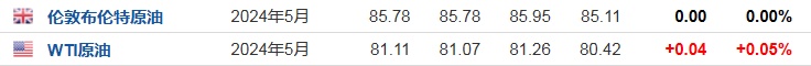 3.截至发稿,WTI原油涨0.05%,报81.11美元/桶。布伦特原油涨0.00%,报85.78美元/桶。