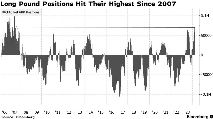 这对市场来说是一个迅速的转变。就在两周前,英镑的表现超过了全球90%以上的货币,投机投资者(包括对冲基金和资产管理公司)的英镑多头头寸升至55亿美元,为2007年7月以来的最高水平。市场人士警告称,快速平仓可能引发英镑进一步下跌。
