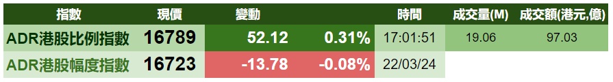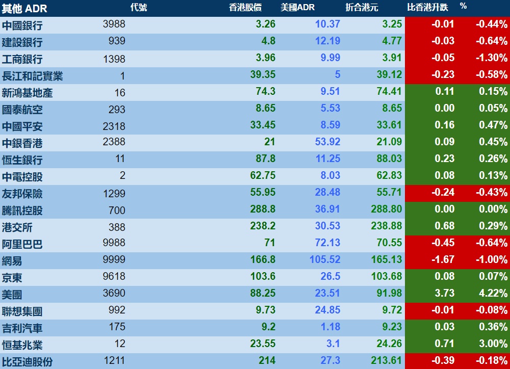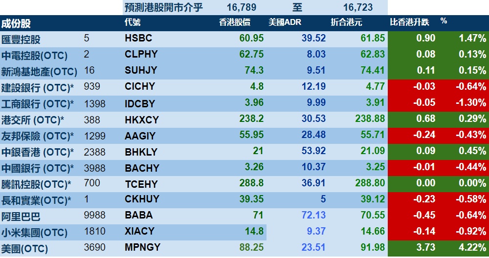 智通财经APP获悉,周五美股三大指数涨跌不一,港股ADR指数上涨,按比例计算,收报16789点,较香港收市涨52.12点或0.31%。