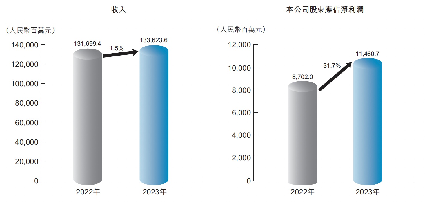 根据财报,2023年中国宏桥实现收入1336.24亿元(人民币,单位下同),同比增加1.5%;归母净利润114.61亿元,同比增幅高达31.7%。