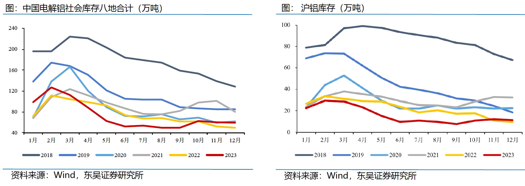 库存方面,2023年由于云南限电限产带来的供给扰动,以及“保交楼,保民生”使得地产这一传统需求有所企稳,而以汽车轻量化、光伏板块以及特高压建设为代表的新需求则在“双碳”政策下实现高速增长;同时海外价差的变化使得净进口数量锐减,多重因素重叠下,供给受限而需求恢复使得铝锭的显性库存以及社会库存始终处于近几年来低位水平。