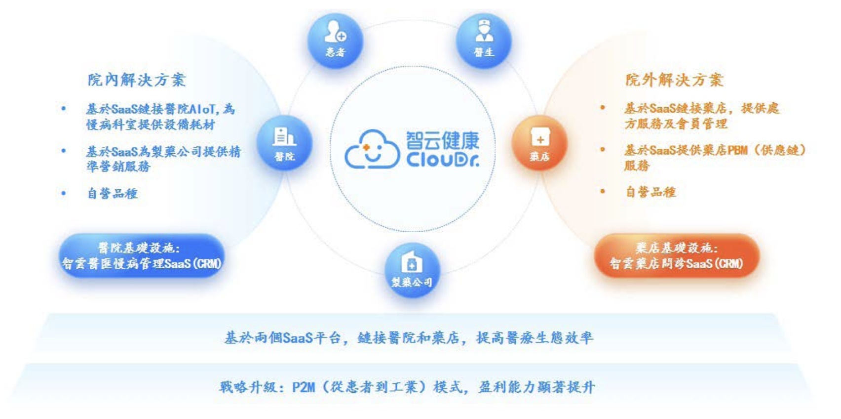 值得一提的是,为了满足市场的多样需求,也为了增强公司的市场竞争力,2023年以来,公司进一步优化战略定位,将“从患者到工业”的P2M模式进行了全方位的升级。据智通财经APP了解,在P2M战略下,智云健康通过与制药公司的战略合作,以销售公司拥有所有权、销售权或其他独家权利的自营产品。在公司优异的数字化能力中,将工业企业与智云SaaS覆盖的终端医院及药房联系起来,最终为慢病患者带来具有竞争力定价和极为便利的优质产品,在实现从患者到工业的高效连接的同时,公司盈利的天花板也成功被打开。