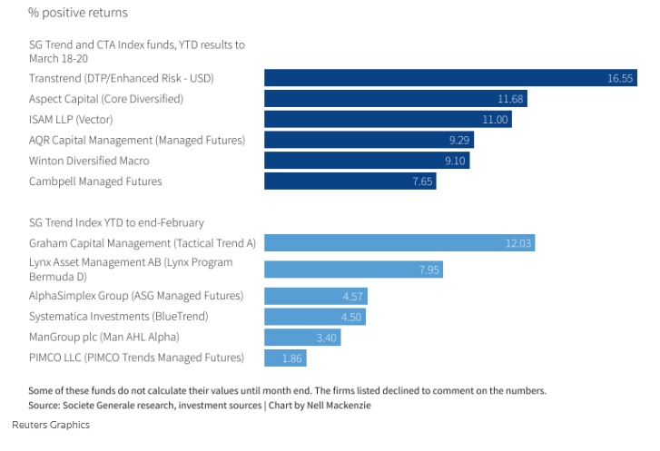 此外,另一位了解该基金的消息人士称,规模为86亿美元的Aspect Capital受益于可可、智利比索、日元、股市和欧洲碳排放的趋势。截至3月19日的一年,该基金的回报率为12%。
