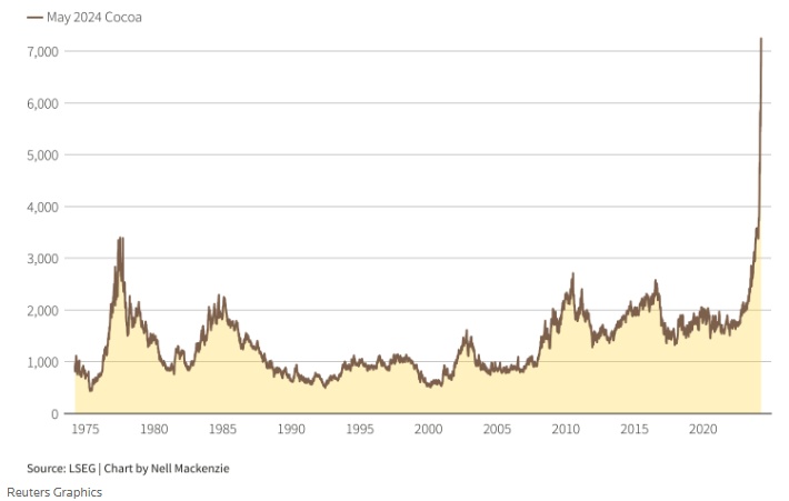 据了解,可可价格在过去一年中翻了一番多,由于科特迪瓦和加纳这两个最大生产国的作物欠佳,以及加工商争相获取可可豆,推动了价格上涨。