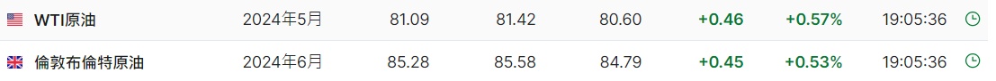 3. 截至发稿,WTI原油涨0.57%,报81.09美元/桶。布伦特原油涨0.45%,报85.28美元/桶。