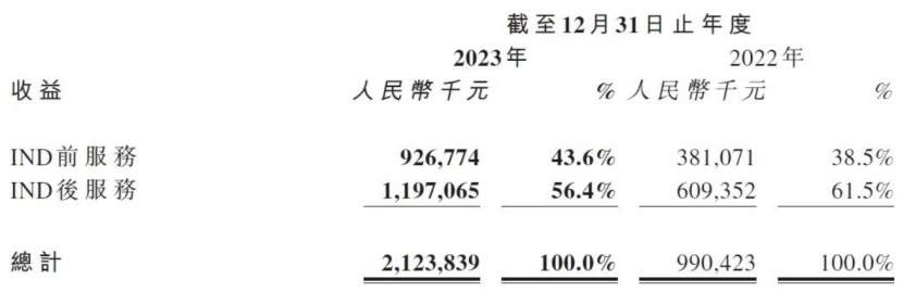2023年,药明合联的收入达到21.24亿元,同比大幅增长114%;同期录得经调整净利润为4.12亿元,同比大增112%。强劲的财务表现背后,反映的是药明合联趋于成熟的后端项目已然成为公司收入稳健增长的强支撑。报告期内,公司综合项目143个,临床II期和III期项目数21个,包括5个PPQ项目。IND后服务收入占比达到56%,支持公司收入稳健增长。储备订单总额增长 82%至 5.79 亿美元,为公司未来维持高速增长势头打下基础。