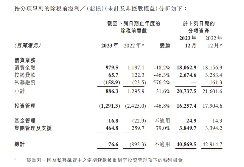 财报显示,2023年新鸿基公司信贷业务呈现明显收缩态势,其中消费金融贡献除税前利润为9.80亿元,同比下滑18.2%;按揭贷款业务和私募融资业务亦均有不同程度的下滑。