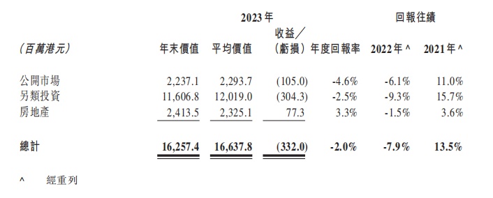 在分化波动的宏观背景下,新鸿基公司始终采取审慎的资本配置策略,2023年投资管理的整体年度回报率同比提升了5.9个百分点至-2.0%。