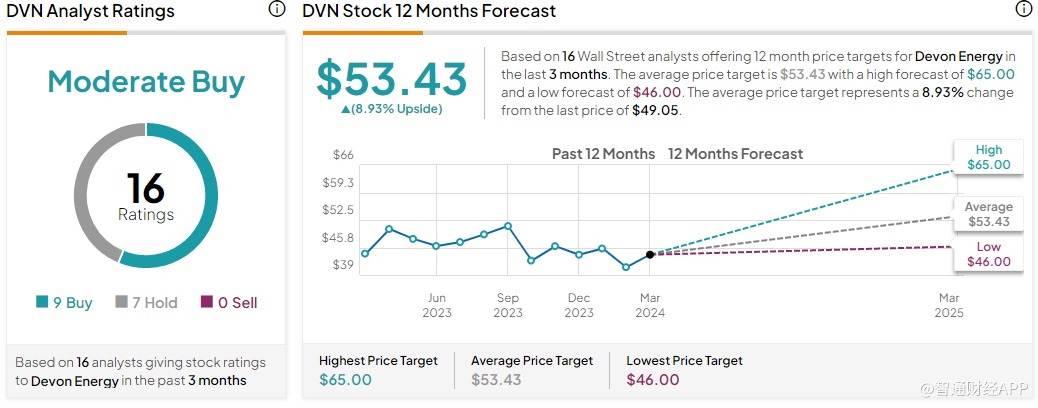 总体而言,华尔街分析师予德文能源“适度买入”评级,平均目标价为53.43美元,较当前水平上涨近9%。