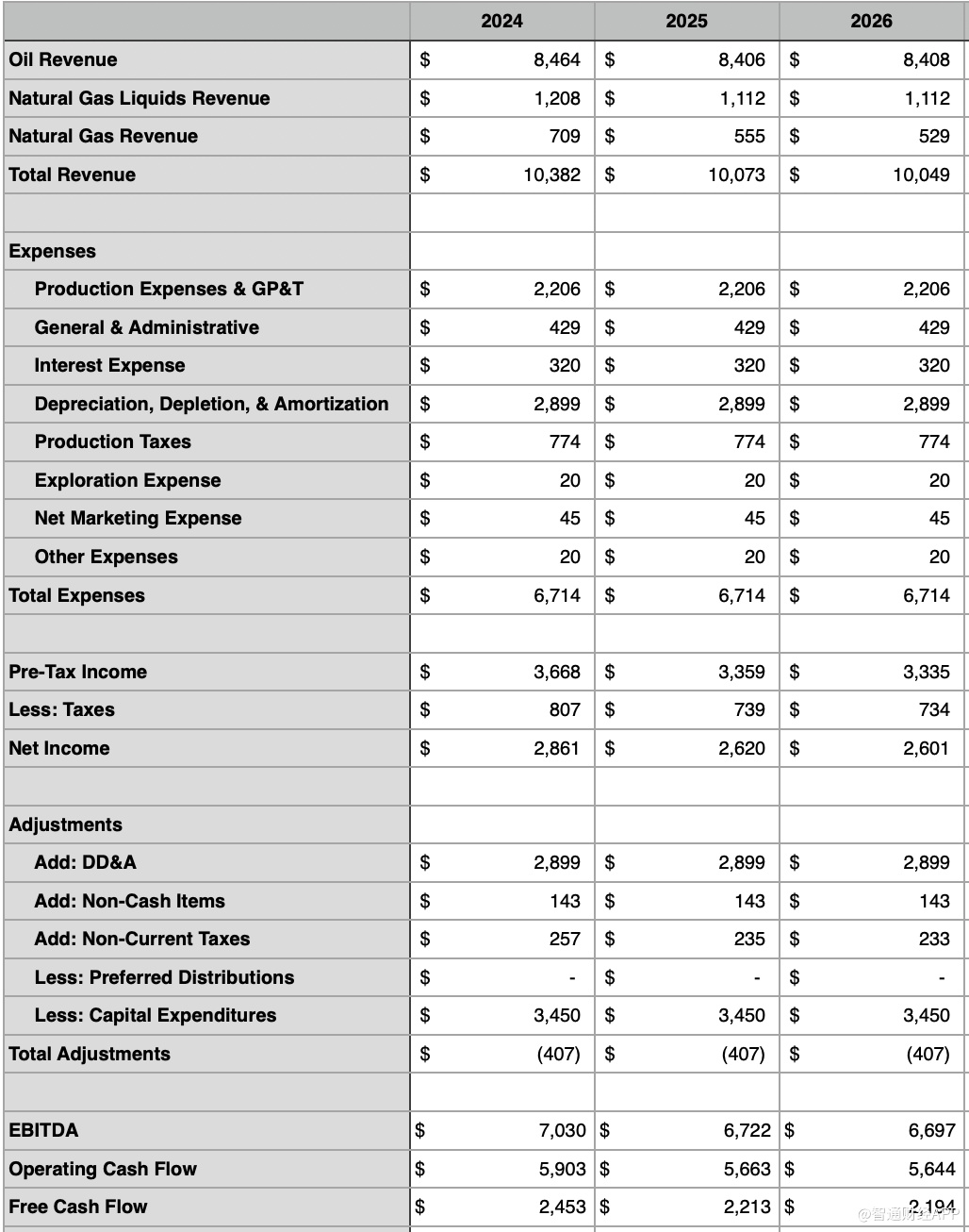 Jones还表示,高杠杆率可能扼杀机会,而低杠杆率可能证明溢价是合理的。好消息是,目前德文能源的净杠杆率相当低。基于2024年的预测数据,德文能源的净杠杆率为0.75,而2025年和2026年净杠杆率为0.79。