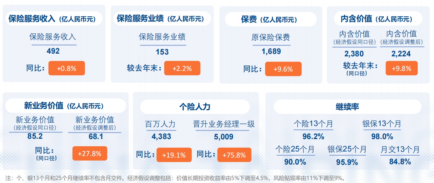 经营业绩稳中向好。集团总资产突破1.5万亿港元,较2022年末增长14.2%;人民币口径下为1.37万亿人民币,增长15.9%。净资产1,325.96亿港元,较2022年末增长20.8%;人民币口径下为1,201.61亿人民币,增长22.5%。保险服务业绩185.31亿港元,同比增长3.2%;人民币口径下为166.88亿人民币,增长8.2%。股东应占溢利61.90亿港元,同比提升44.1%;人民币口径下为55.74亿人民币,增长50.9%。
