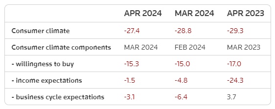 智通财经APP注意到,GfK和纽伦堡市场决策研究所(NIM)周二联合发布的4月消费者信心指数小幅上升,从3月修正后的负28.8升至负27.4,超过调查分析师预估的负27.8。尽管德国经济发展仍充满不确定性,但德国4月消费者信心料维持在缓慢复苏的轨道上,这得益于认为有必要储蓄的家庭减少。