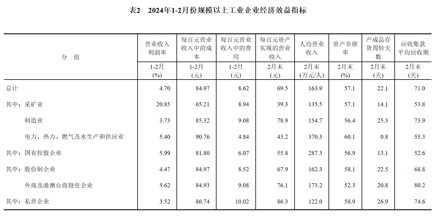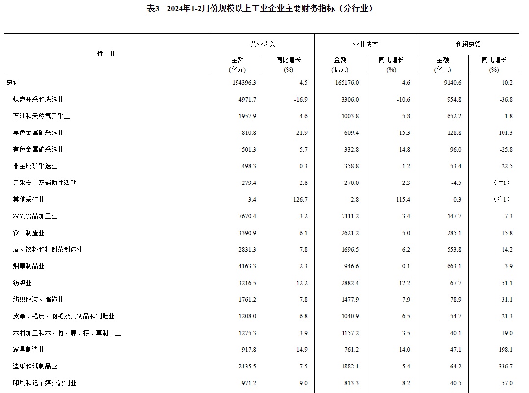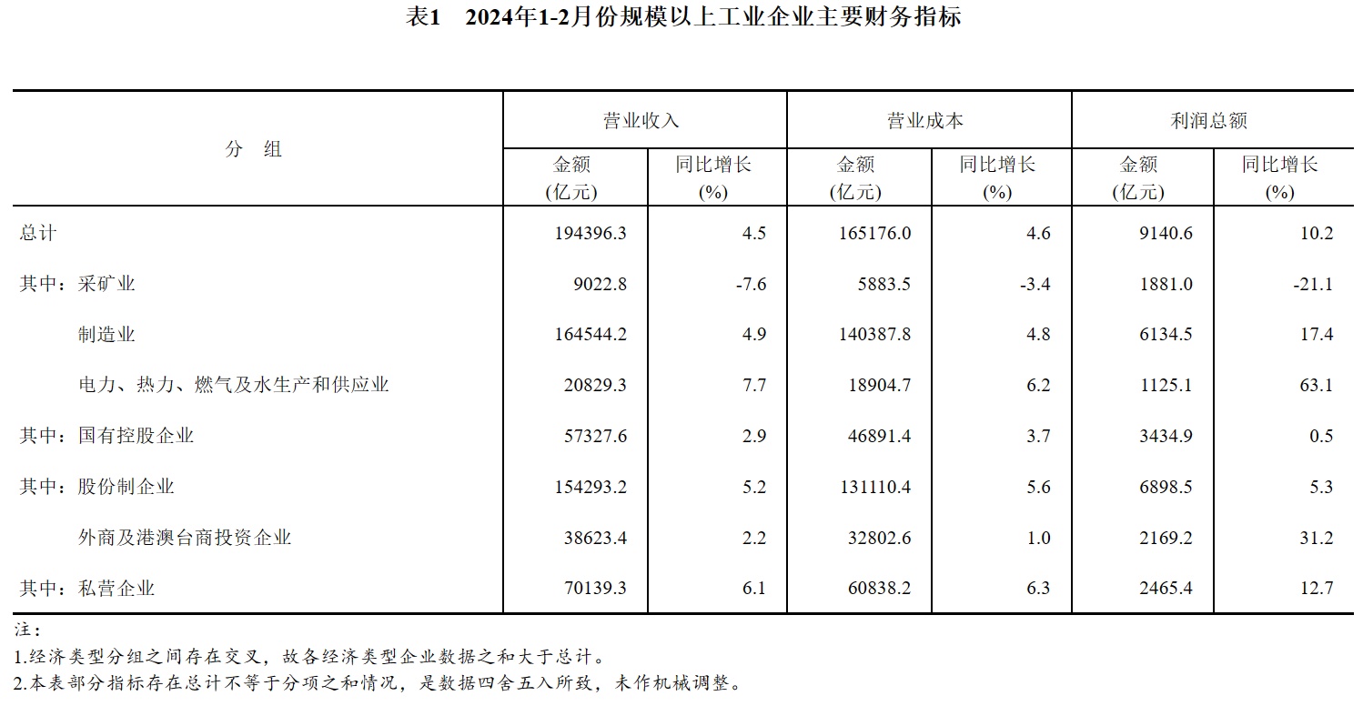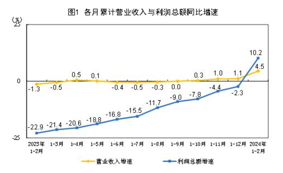 2024年1—2月份全国规模以上工业企业利润增长10.2%