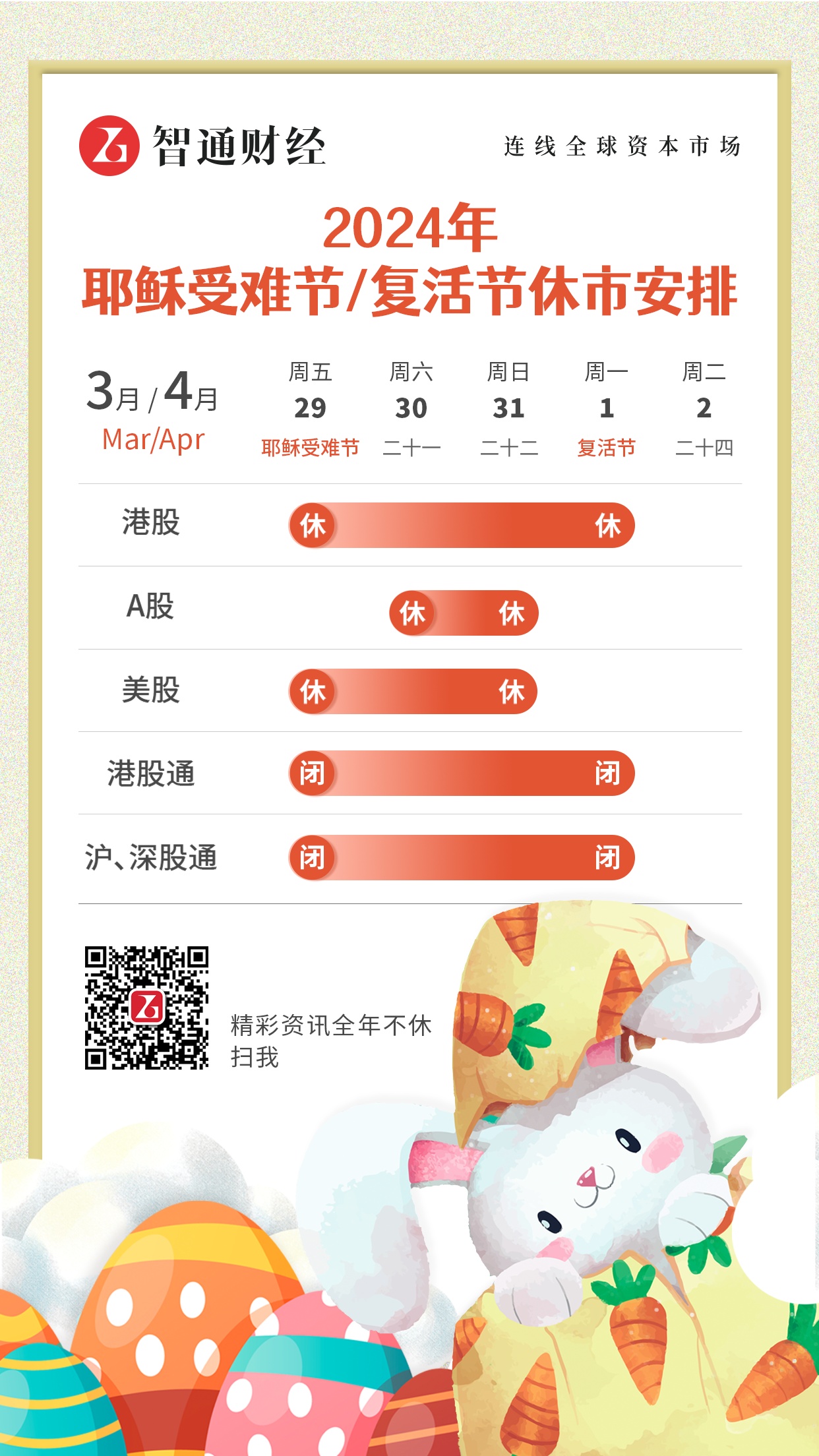 智通财经APP获悉,耶稣受难节、复活节假期即将来临,港股3月29日(本周五)休市,4月2日(下周二)照常开市。