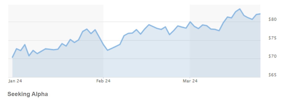 这主要是由于油价今年稳步上升所致,如上图所示。Jensen预计第二季度油价将保持强劲,原因是经济增长和欧佩克维持减产。如果多个地缘政治问题区域失控,石油可能会大幅上涨。