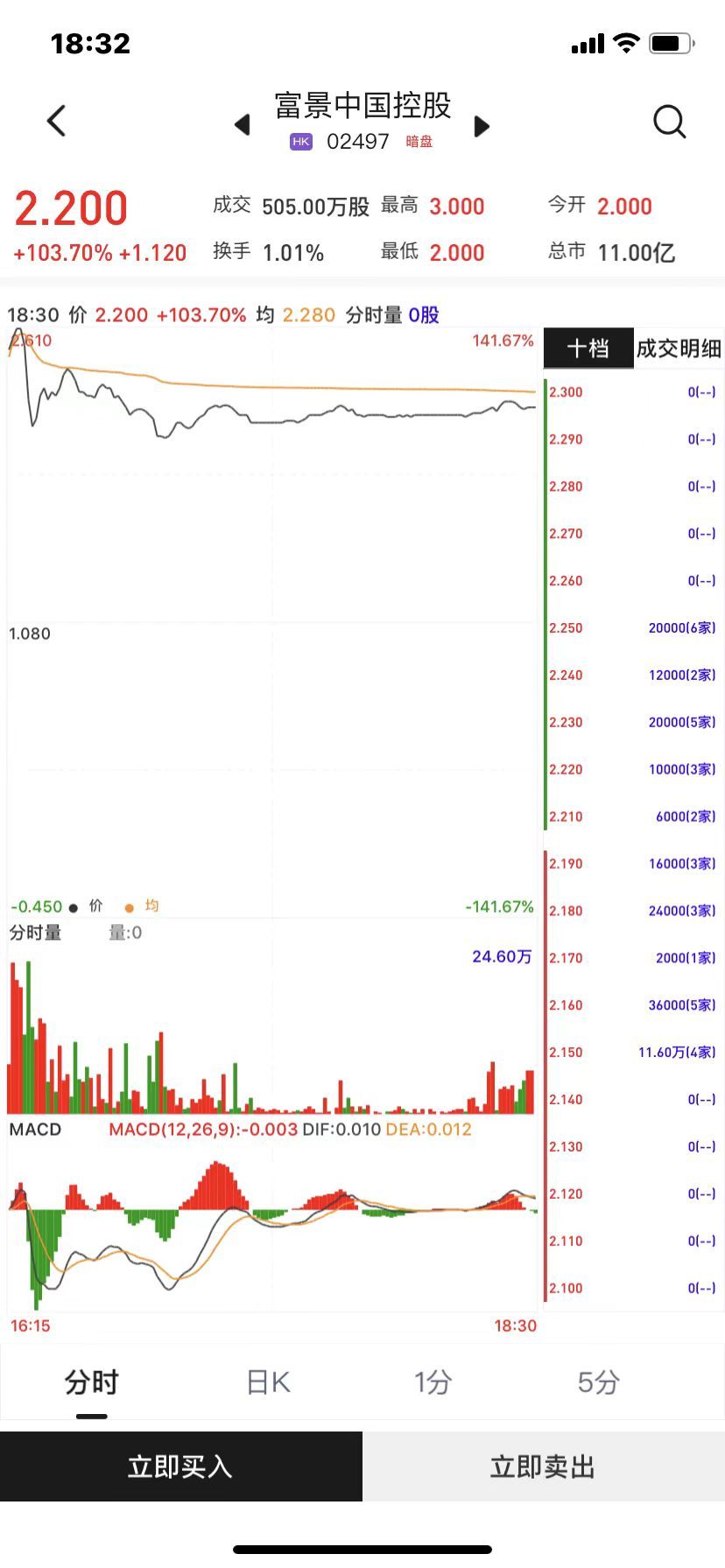 智通财经APP获悉,富景中国控股(02497)将于3月28日(周四)在香港挂牌。截至收盘,利弗莫尔证券暗盘交易显示报价2.20港元,较招股价1.08港元上涨103.70%。每手2000股,不计手续费,每手赚2240港元。
