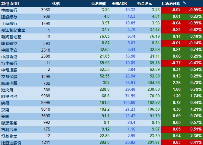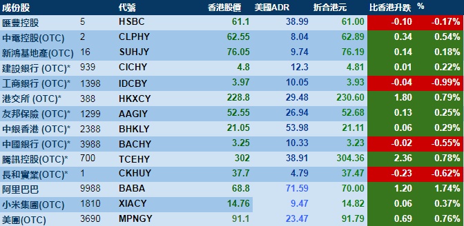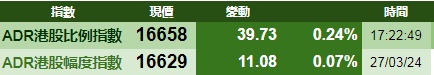 智通财经APP获悉,周三美股三大指数集体收涨,港股ADR指数上涨,按比例计算,收报16658点,较香港收市上涨39.73点或0.24%。