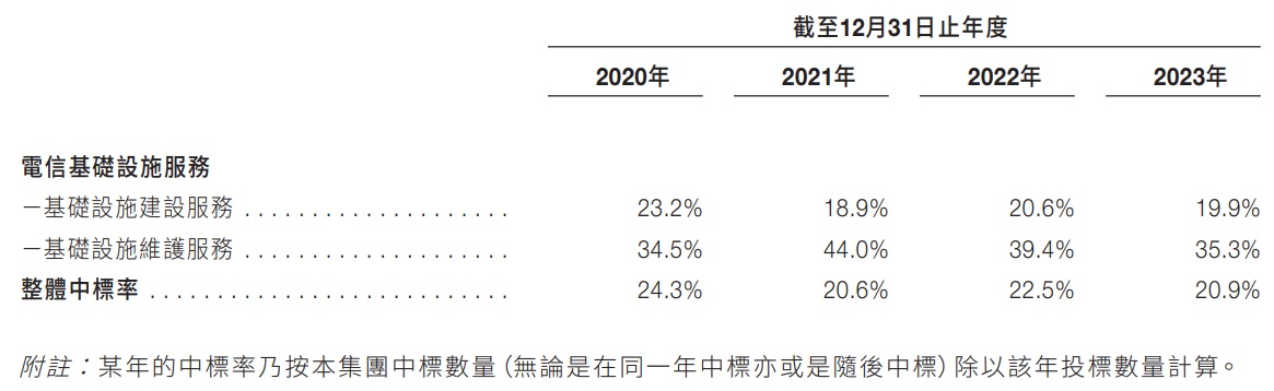 于往绩记录期间,电信基础设施服务项目一般以公开投标方式获得,据此任何合资格服务提供者可投标以提供客户要求的服务,然而,基础设施数字化解决方案服务项目一般以单一来源采购或回应报价邀请的方式获得,据此客户将接洽集团直接获得条款及取得报价,并可能就相互协定的合约条款进行磋商。
