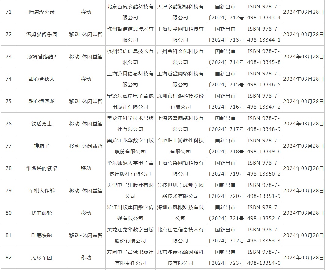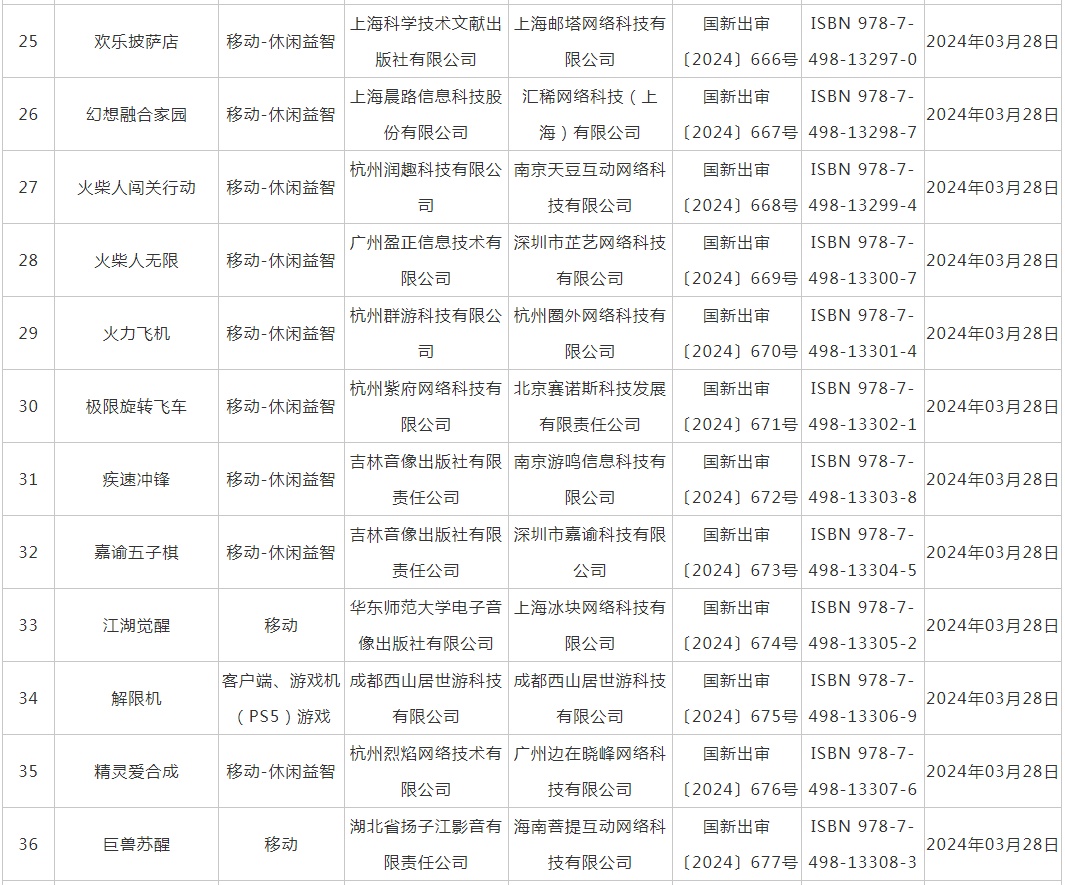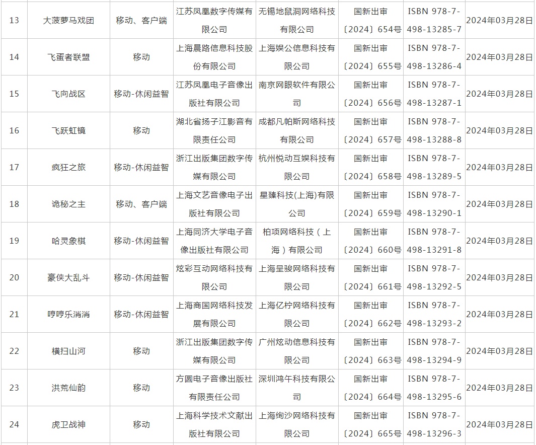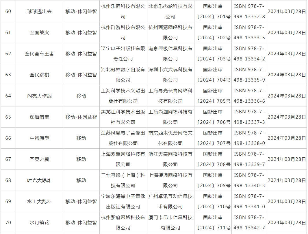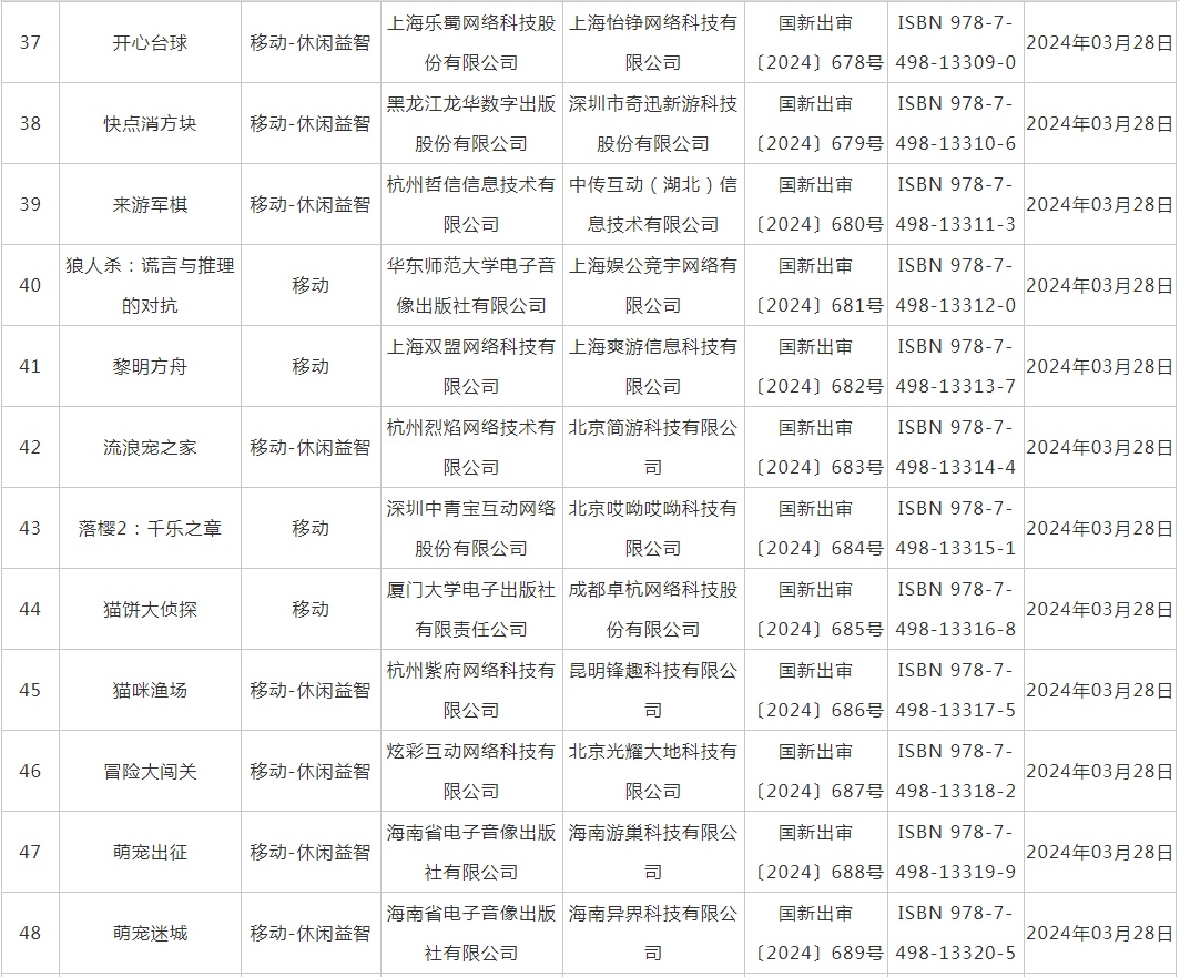 智通财经APP获悉,3月29日,国家新闻出版署发布2024年3月份国产网络游戏审批信息,共107款游戏获批。其中包括中青宝(300052.SZ)的《从零开始:梦境》《落樱2:千乐之章》;吉比特(603444.SH)的《异界原点传说:史莱姆不哭》;三七互娱(002555.SZ)的《时光大爆炸》等。
