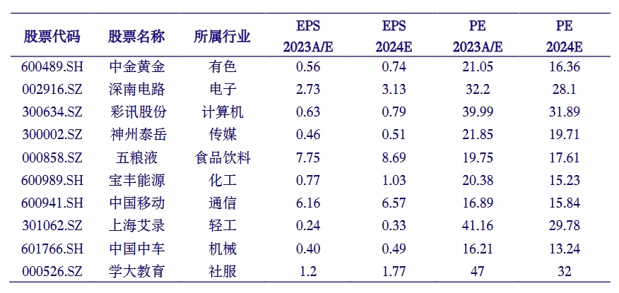 2024年4月十大月度金股(不分先后)包括: