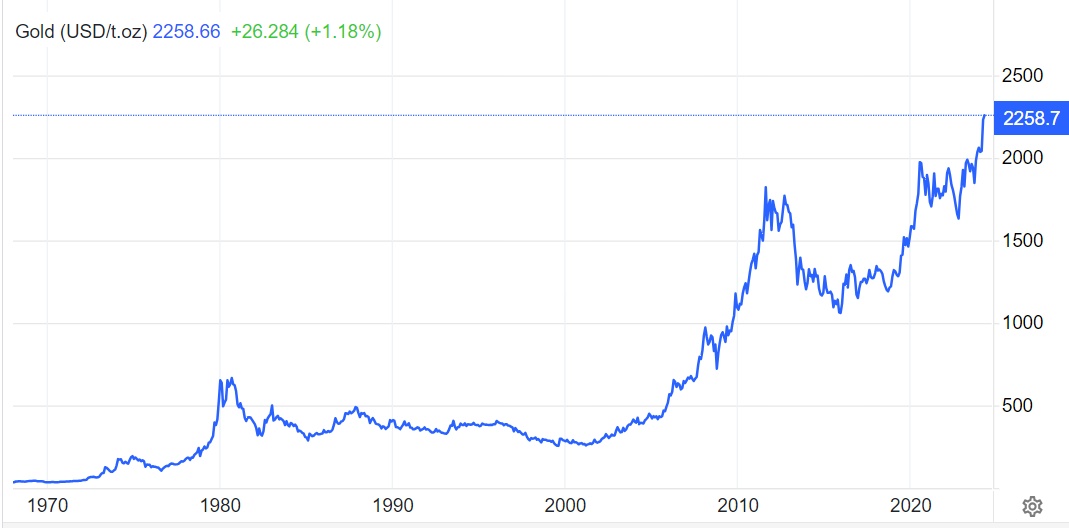 智通财经APP获悉,在第二季度伊始,黄金现货价格站上2250美元/盎司这一重要关口,上涨至创纪录的历史新高水平,延续了2023年年末以来美联储降息预期和全球地缘政治紧张局势所全面驱动的金价猛烈涨势。周一亚洲交易早盘时间段,现货金价一度上涨超1%,至每盎司2,259.69美元,维持近期几个交易日以来的金价屡创新高之势。黄金作为一种传统意义上的避险资产,通常在全球利率下降和地缘政治动荡时期表现最为强劲,因此在一些分析人士看来,黄金正迎来一个“黄金上行时点”。