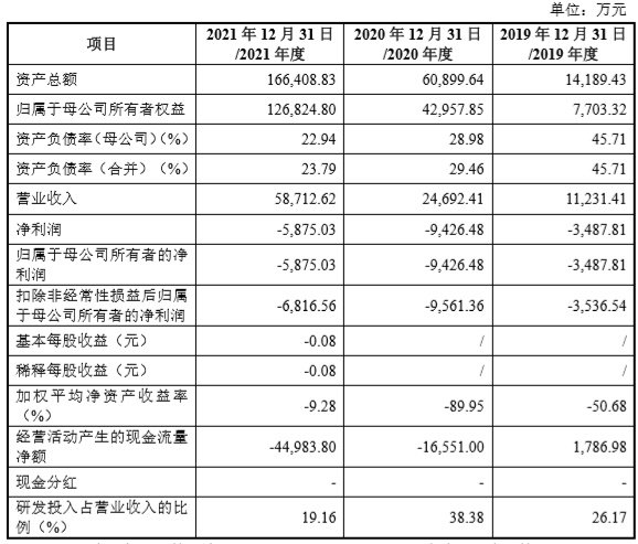 财务方面,于2019年度、2020年度、2021年度,捷氢科技实现营业收入分别约为1.12亿元、2.47亿元、5.87亿元人民币;同期,该公司实现净利润分别为-3487.81万元、-9426.48万元、-5875.03万元人民币。