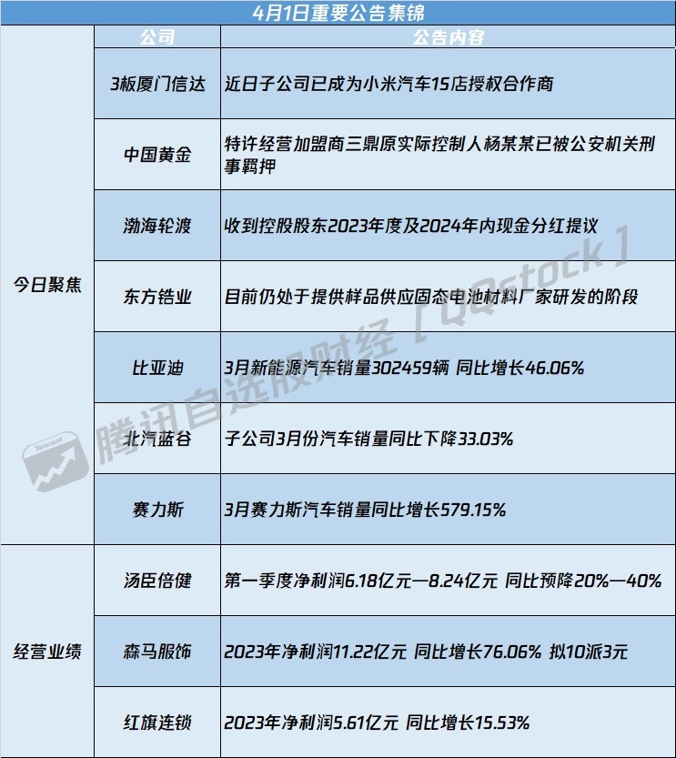 1、3板厦门信达:近日子公司已成为小米汽车1S店授权合作商