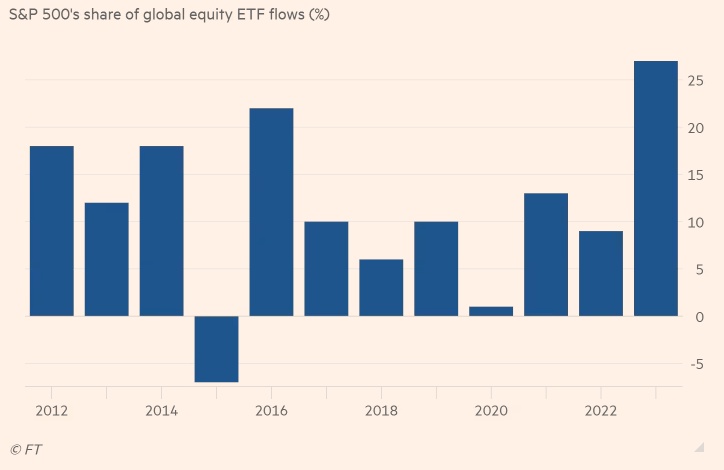 在美国国内,科尔曼将去年对标普500指数ETF的巨大需求归因于该指数的强劲表现。