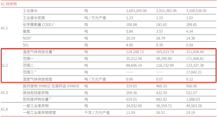 在环境方面,白云山严格遵循国家废气达标排放标准,并部署下属公司开展废气管理工作,引进废气处理装置,优化生产工艺流程,确保废气达标排放,降低废气对环境产生的影响。于2023年,该集团部分生产企业进行锅炉低氮改造,NOX排放浓度降低。报告期内,白云山生物大规模模拟生产,天然气消耗剧增,且其他下属企业因生产需要,外购蒸汽增加,因此 2023 年温室气体排放总量较2022年相比增加146814.61吨。该集团承诺以 2023 年为基准年,到2030年实现温室气体排放密度下降20%。