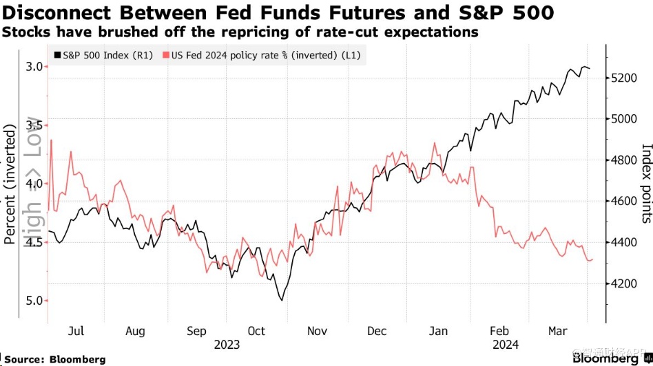 今年以来,在大型股和科技股的推动下,美国基准指数继续上涨,因为美国经济保持弹性,而通胀一直呈下降趋势,这为美联储今年降息提供了支撑。不过,对美联储首次降息的预期已从3月推迟到6月,美联储在6月会议上降息的概率仅略高于50%。