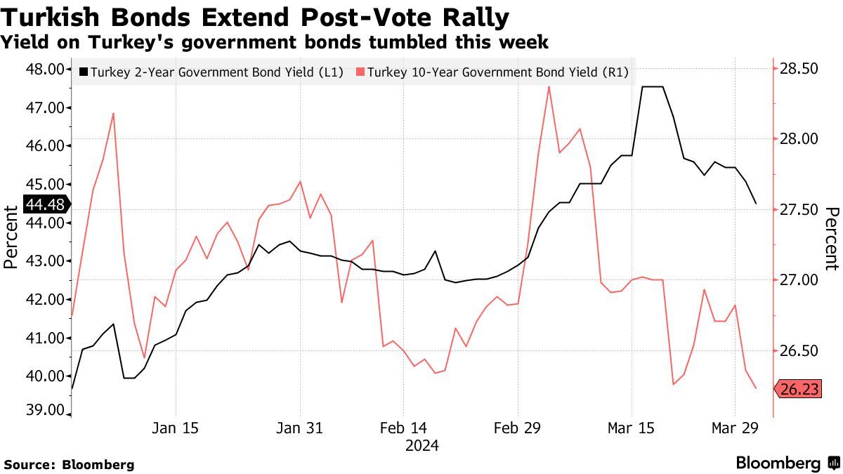 埃尔多安表示,目前的经济政策将产生积极的结果。在地方选举风险消除后,投资者开始重返他们在地方选举前逃离的市场。根据土耳其央行的数据,在3月份的前三周,外国投资者卖出了超过4.5亿美元的土耳其债券和股票。
