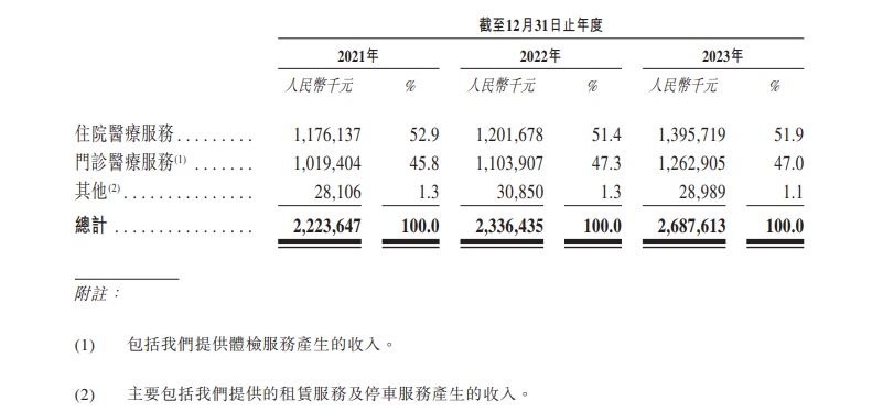 明基医院专注于通过多学科民营营利性综合医院为患者提供连续的优质医疗服务。于往绩记录期间,其收入主要来自提供综合医疗服务,包括住院医疗服务及门诊医疗服务。下表为所示年度明基医院按分部划分的收入组成部分(按绝对金额及占总收入的百分比列示):