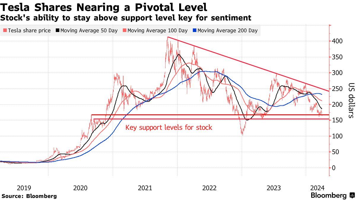 Miller Tabak + Co首席市场策略师Matt Maley表示:“这(150美元)不仅是去年4月以来的最低水平,也是我们发现该股八个月下行趋势通道的底部。因此,能否守住该水平对特斯拉未来数天或数周的走势而言将极为重要。”