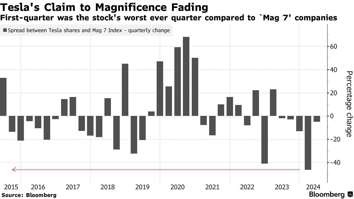 特斯拉股价近段时间以来的低迷表现反映了人们对电动汽车需求疲软的担忧。该公司第一季度的交付量仅为386,810辆,远低于市场平均预期的449,080辆。受此影响,特斯拉周二收跌4.9%,成为纳斯达克100指数收跌0.9%的最大推手。