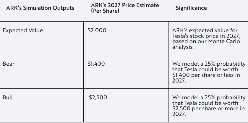 具体而言,“木头姐”创立并担任首席执行官的Ark Investment预测在牛市情况下,该股股价将为2500美元;在熊市情况下,该股股价将为1400美元。