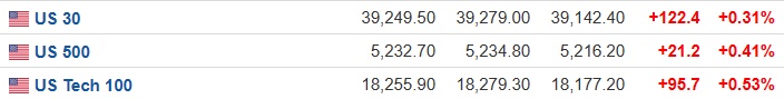 1.4月4日(周四)美股盘前,美股三大股指期货齐涨。截至发稿,道指期货涨0.31%,标普500指数期货涨0.41%,纳指期货涨0.53%。