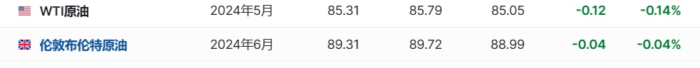 3.截至发稿,WTI原油跌0.14%,报85.31美元/桶。布伦特原油跌0.04%,报89.31美元/桶。