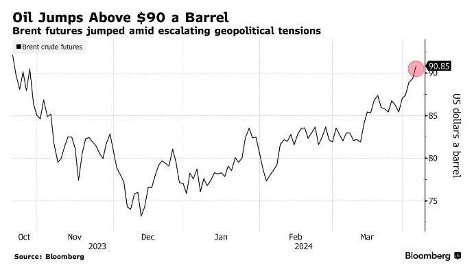 智通财经APP获悉,由于中东紧张局势有可能升级为一场更广泛的地区战争,布伦特原油价格自去年10月以来首次突破90美元/桶。