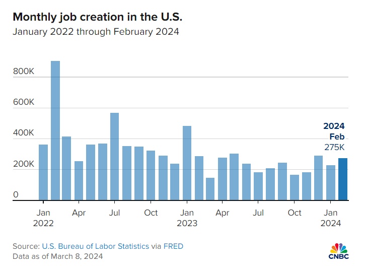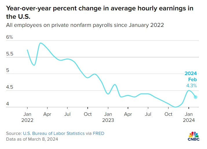 市场预计,3月平均时薪环比将增长0.3%,比2月的0.1%有所上升,不过预计同比增幅为4.1%,比2月低0.2个百分点。