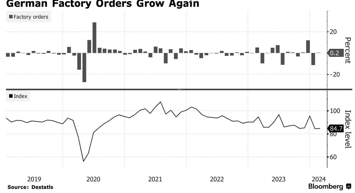 德国工厂订单在年初急剧下降后,2月份有所上升,这增加了人们的希望,即经济正在触底反弹,任何可能出现的衰退都可能是温和而短暂的。