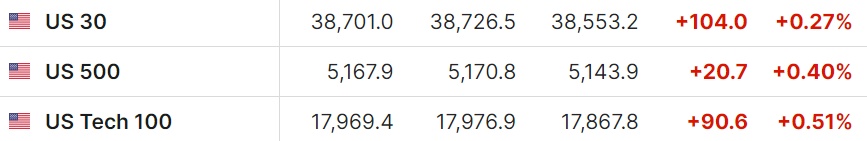 1.4月5日(周五)美股盘前,美股三大股指期货齐涨。截至发稿,道指期货涨0.27%,标普500指数期货涨0.40%,纳指期货涨0.51%。