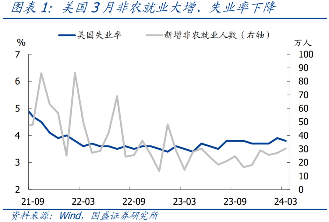 1、美国3月就业数据全面超预期,薪资增速加快,劳动力市场依然十分强劲。