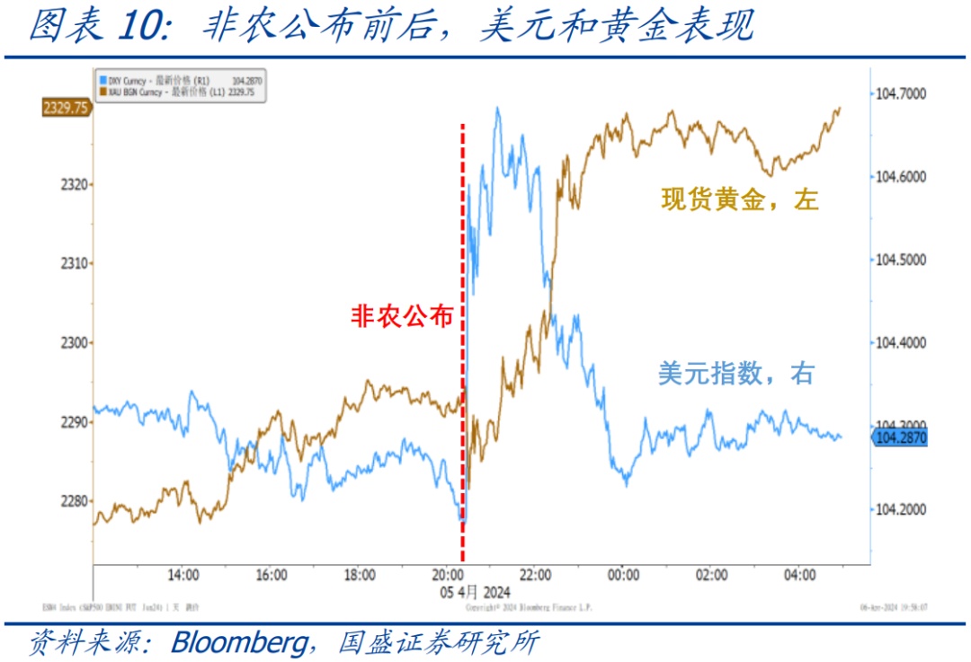 大类资产表现:非农公布后,美股上涨,标普500、纳斯达克、道琼斯指数分别收涨1.1%、1.2%、0.8%;10Y美债收益率震荡走高,最终上行8.3bp至4.40%;美元指数快速冲高后有所回落,最终小幅收涨0.1%至104.3;现货黄金短暂下跌后持续走高,最终收涨1.8%至2329.6美元/盎司,再创历史新高。